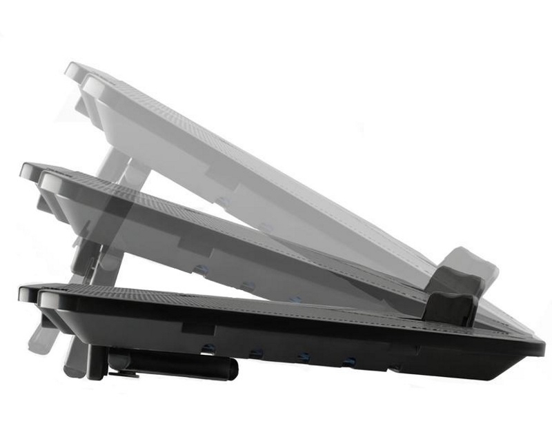 Osnovne karakteristike – Tip: Postolje i hladnjak za laptop Tip hlađenja: Aktivno Ventilatori – Broj ventilatora: 2 Dimenzije ventilatora: 140mm Protok vazduha: 74cfm Ostale karakteristike – Dodatne funkcije: Podesivost visine,Podešavanje brzine ventilatora Priključci: 2xUSB 2.0 tip A (ženski) Fizičke karakteristike – Nivo buke: 26dB Boja: Crna Stanje: Nekorišćeno Reklamacioni period – Reklamacioni period: 24 meseca